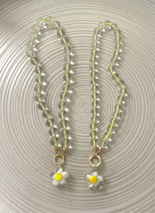 Bright Bubble Necklace: Clear Glass Bubble Beads Handknotted on Neon Yellow Silk Thread Gold Circle Clasp Handmade Glass Daisy Pendants 2 Bead Options: 8mm or 10mm