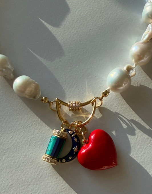 Tortoiseshell Holiday Collar: Resin beads with a natural Baroque Pearl and red glass beads Limited Edition