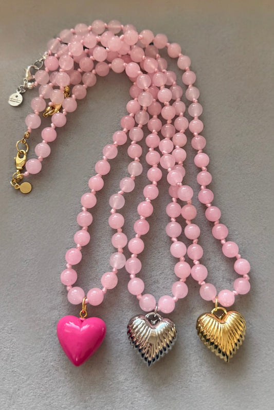 La Vie en Rose necklace: Rose Quartz round beads with choice of Heart pendant