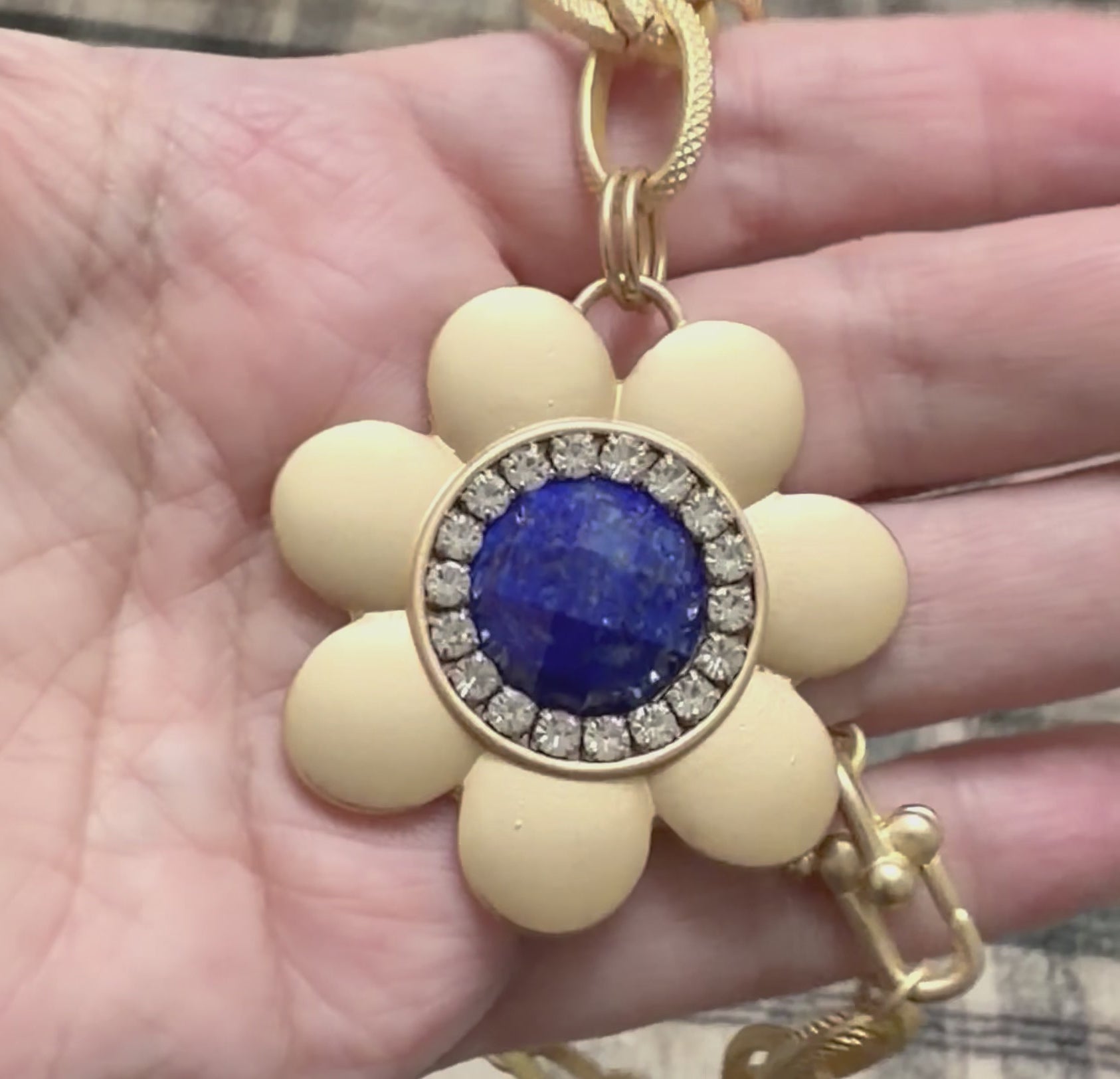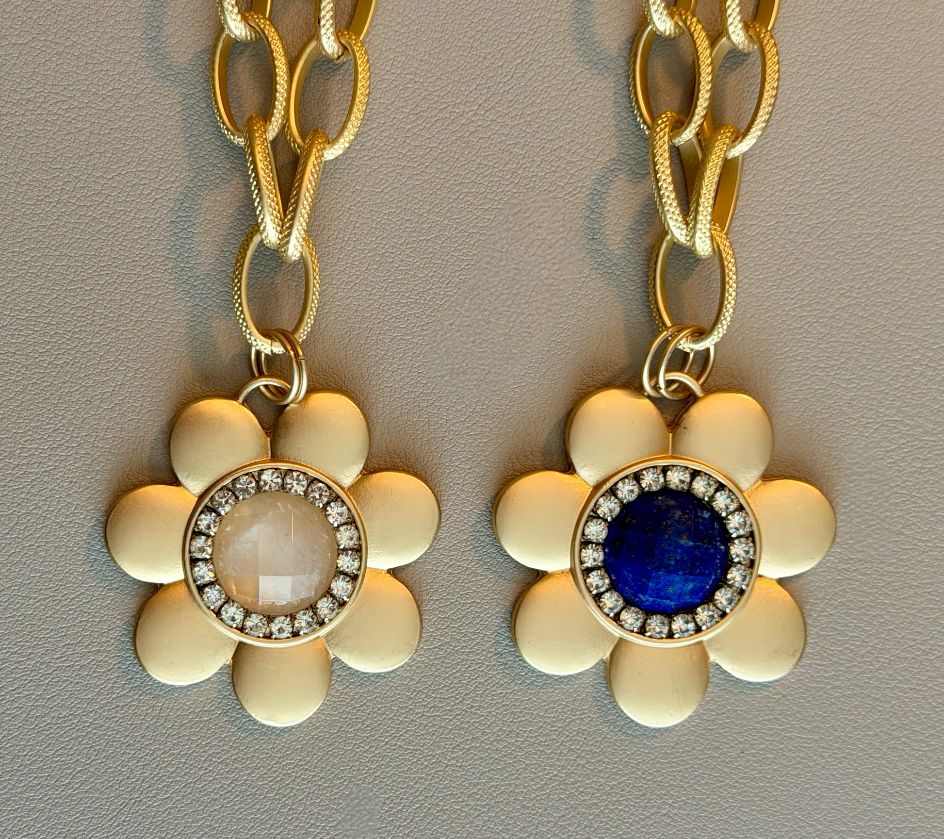 - Lapis Center (Matte Gold Chain) — A vibrant pop of deep blue that feels bold, joyful, and effortlessly eye-catching.
