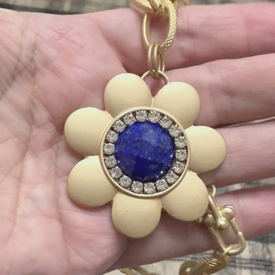 Fresh, radiant, and full of charm—The Daisy Gem Center Necklace is your perfect welcome to spring and summer. With soft sculpted petals and a faceted center stone, each pendant is framed by a halo of antique Czech glass rhinestones that catch the light with every movement.